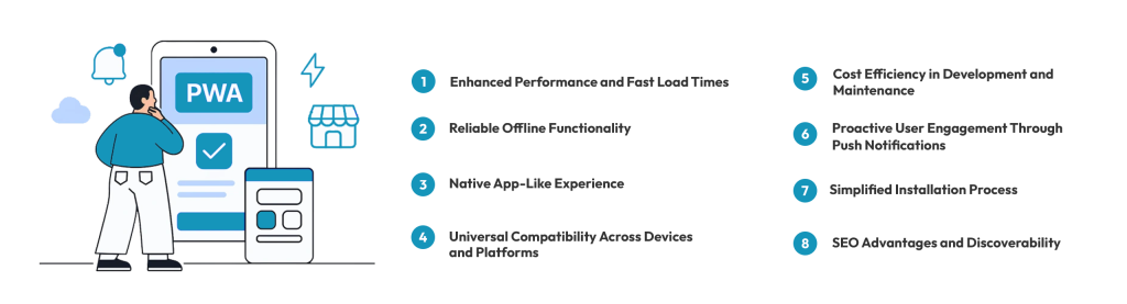 These benefits make Progressive Web Apps a compelling choice for businesses seeking to deliver high-performance, engaging, and cost-effective digital experiences across all devices.